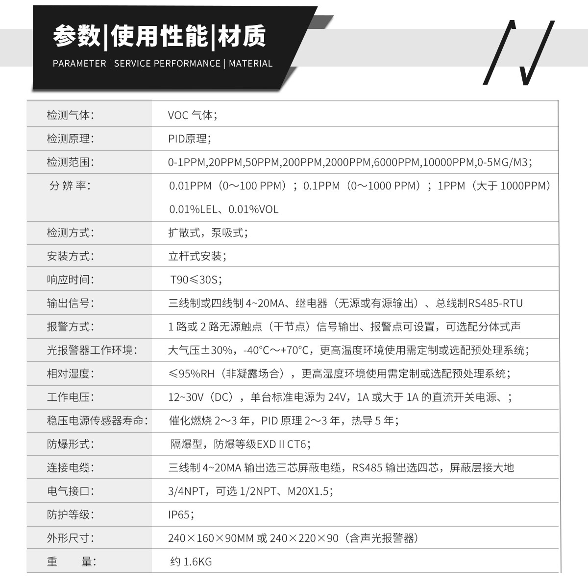 產(chǎn)品概述作為同樣適用于固定源監(jiān)測(cè)產(chǎn)品的AIFLI-VOCs-A光離子化VOCs在線報(bào)警監(jiān)測(cè)儀是完全依照工業(yè)級(jí)設(shè)計(jì)標(biāo)準(zhǔn)研發(fā)的一款防爆型儀器,所選用傳感器不僅獲得國(guó)家防爆電氣產(chǎn)品質(zhì)量監(jiān)督檢測(cè)中心頒發(fā)的防爆合格證,同時(shí)還是國(guó)內(nèi)TVOC探測(cè)器行業(yè)內(nèi)唯一獲得歐盟CE和ROHS雙認(rèn)證的TVOC檢測(cè)儀器品牌。產(chǎn)品內(nèi)置有吸氣泵,將煙道等處的氣體吸入專(zhuān)項(xiàng)配置的預(yù)處理單元,最后進(jìn)入傳感器,以PID光電離子法實(shí)時(shí)測(cè)定固定污染源濃度值。