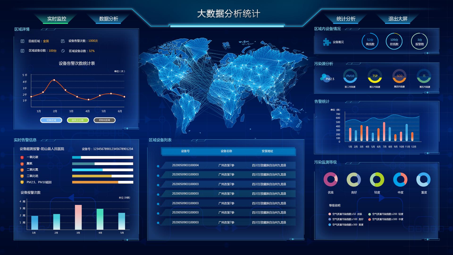 用戶登錄賬號后,可在線查看便攜式惡臭檢測儀實時在線狀態,實時數據、歷史數據、數據曲線分析圖。具備GIS地圖展示、視頻監控、歷史數據查詢、數據對比、污染日歷、傳輸統計、設備排名、數據報表導出、設備狀態、設備自檢、設備管理、用戶管理、生成數據報表、超標報警推送、數據大屏等功能。